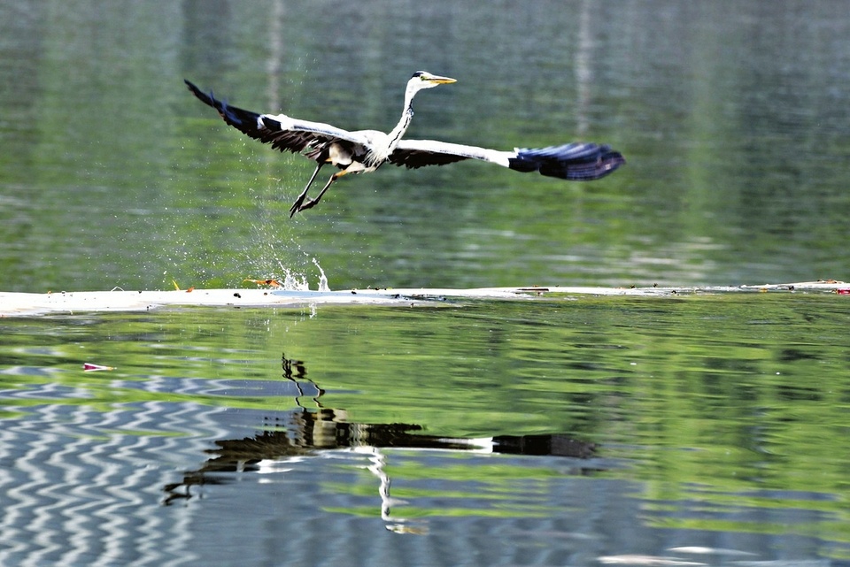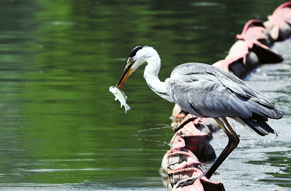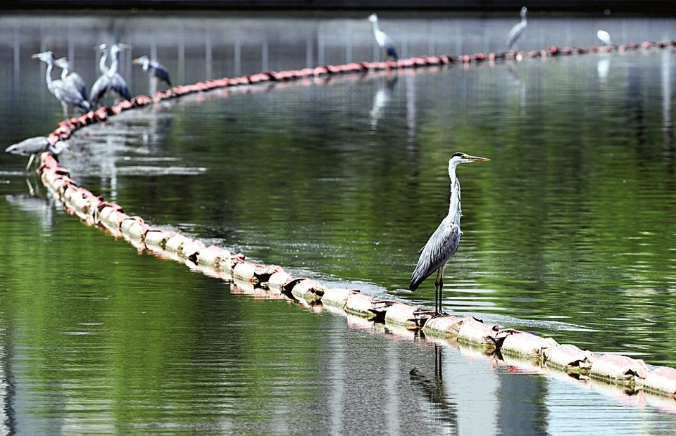 8月16日,在太原汾河景区漪汾桥附近,多只苍鹭、鸬鹚、斑嘴鸭等鸟类,时而自由飞翔,时而捕捉食物,时而栖息……它们灵动可爱的模样,十分引人注目。近几年,随着汾河景区生态环境不断改善,吸引了越来越多的珍稀鸟类来此驻足、栖息,也为景区增添了无限生机。据不完全统计,汾河景区建成后,已有160余种鸟类在此栖息,对保护生物多样性发挥了重要作用。(武六红)