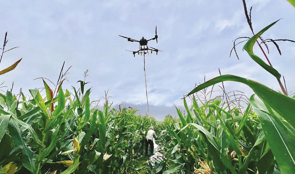 日前,在运城市平陆县的玉米收获现场,田间盘旋的无人机通过精准吊装技术将装满玉米的编织袋从地头快速运送至集中点。无人机作业让传统的人工搬运变为智能调度,既节省了人力成本,还提高了粮食转运效率,助力玉米“高效归仓”。(记者 郝健)