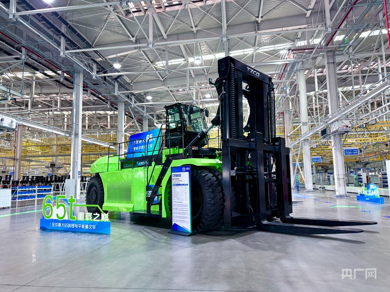 目前全球最大的锂电平衡重叉车(央广网记者张晋鹏摄)