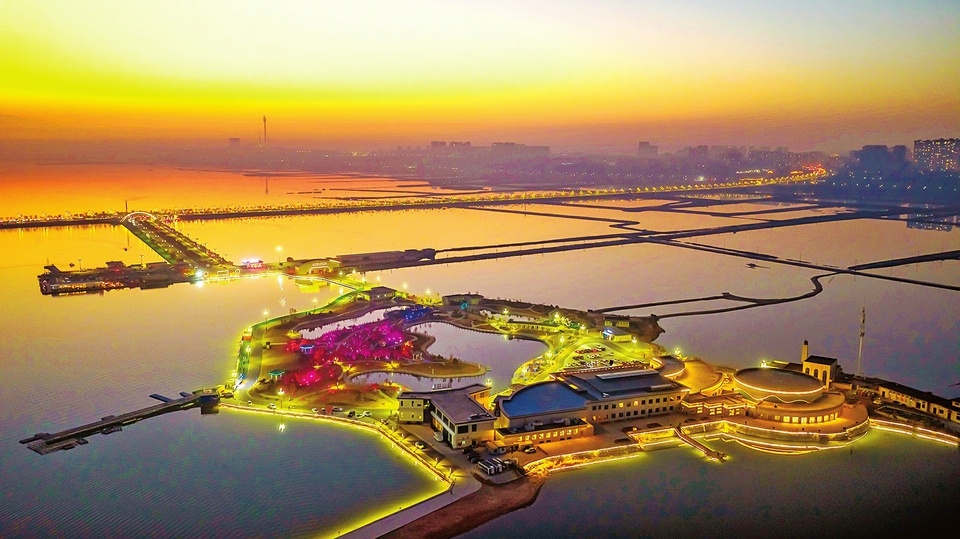 11月29日,运城市盐湖景区灯火璀璨。近年来,该市持续加强盐湖生态建设,盐湖风景越来越美,水质越来越好,成为游客休闲游玩好去处。(闫鑫 摄)