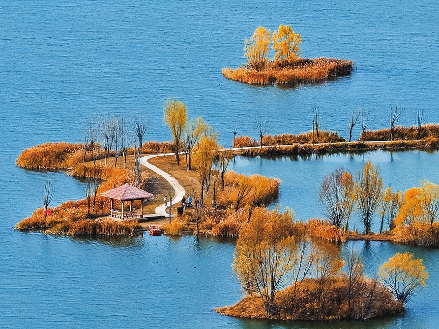12月2日,山西太原汾河四期美景如画,泛黄的草木与清冽的河水勾勒出冬日独有的静谧景致。(记者王瑞瑞 摄)