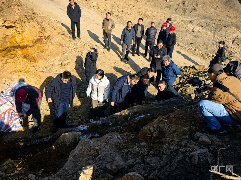 董黎阳和相关专家在阳泉木化石勘察现场(央广网发 白志君摄)