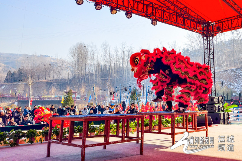 夏县南大里乡果老仙谷内的舞狮表演(姚中吉 摄)