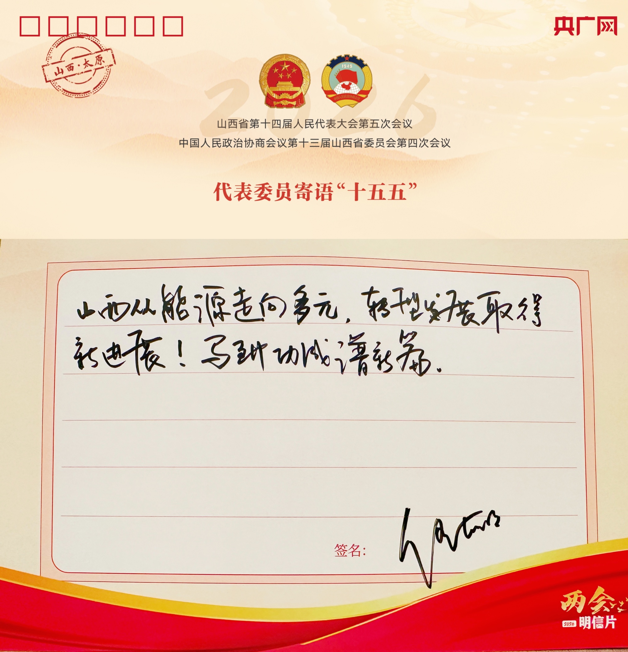 采访结束时,何海明写下了他对“十五五”的寄语——山西从“能源”走向“多元”,转型发展取得新进展!马到功成谱新篇。