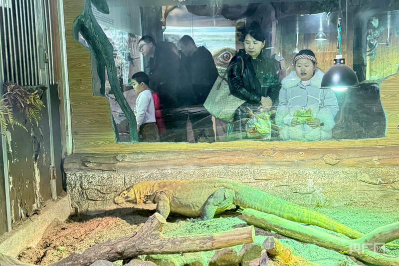负责照料这只巨蜥的太原动物园两栖爬行动物馆工作人员刘嶂鑫,已在馆内工作十余年。2015年,这只雌性科莫多巨蜥以幼体身份入园,刘嶂鑫次年便接手饲养。“当时它很小,天性爱躲藏,又胆小,会有应激反应。”他回忆,最初的三年几乎不做过分的接触,而是慢慢建立信任,逐步上手、训食。