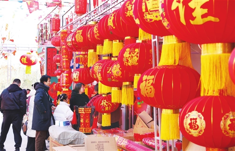 市民认真选购大红灯笼。