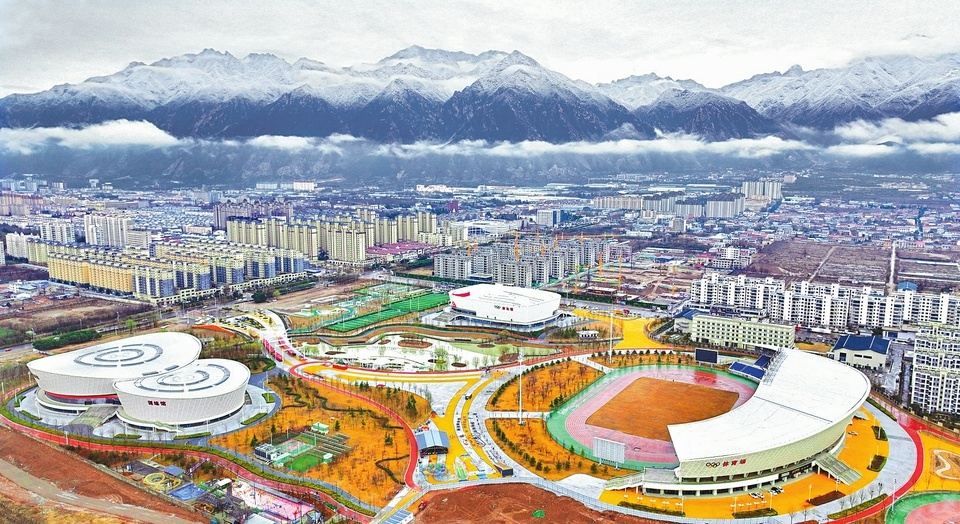 2月23日,受低温降雨天气影响,山西运城永济市城区上空云海翻涌,远处的中条山白雪皑皑、云雾缭绕,从空中俯瞰,宛如仙境,美不胜收。(李向东)