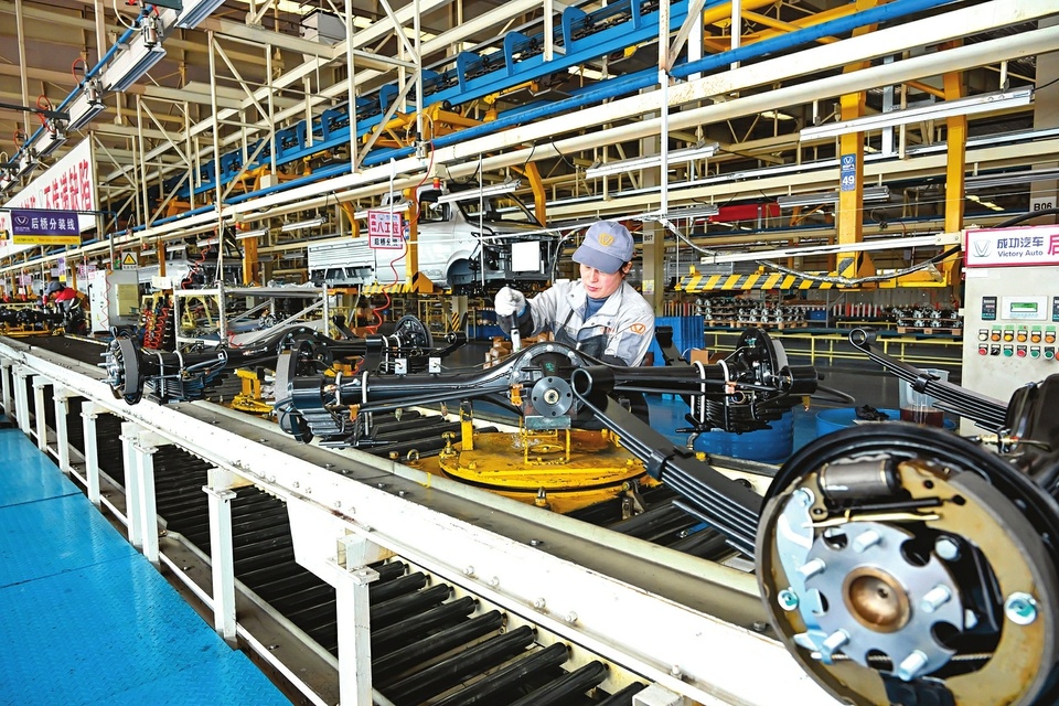 2月27日,山西成功汽车制造有限公司工人在流水线上赶制出口海外的电动车订单。