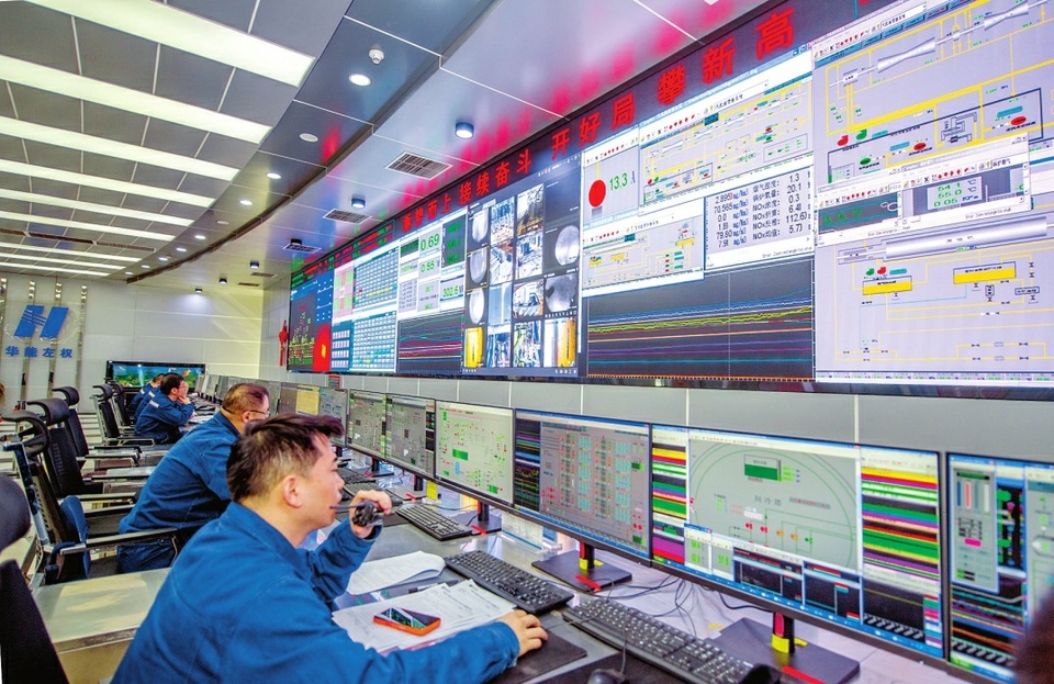 2月24日,华能左权电厂集控指挥中心员工实时监测生产状态,精准调度各项工作。