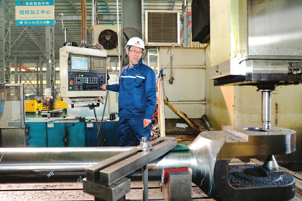 2月24日,山西佳诚液压有限公司员工在“数控加工中心”平台加工配件。