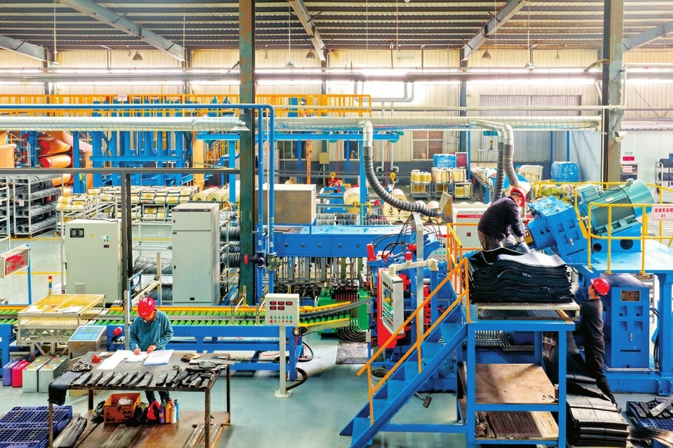 2月24日,山西酷纳斯通橡胶科技有限公司自动化生产线高速运转,数十种型号轮胎接连下线。