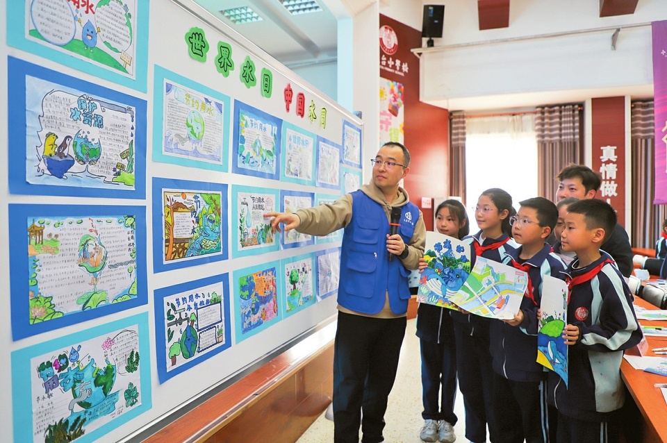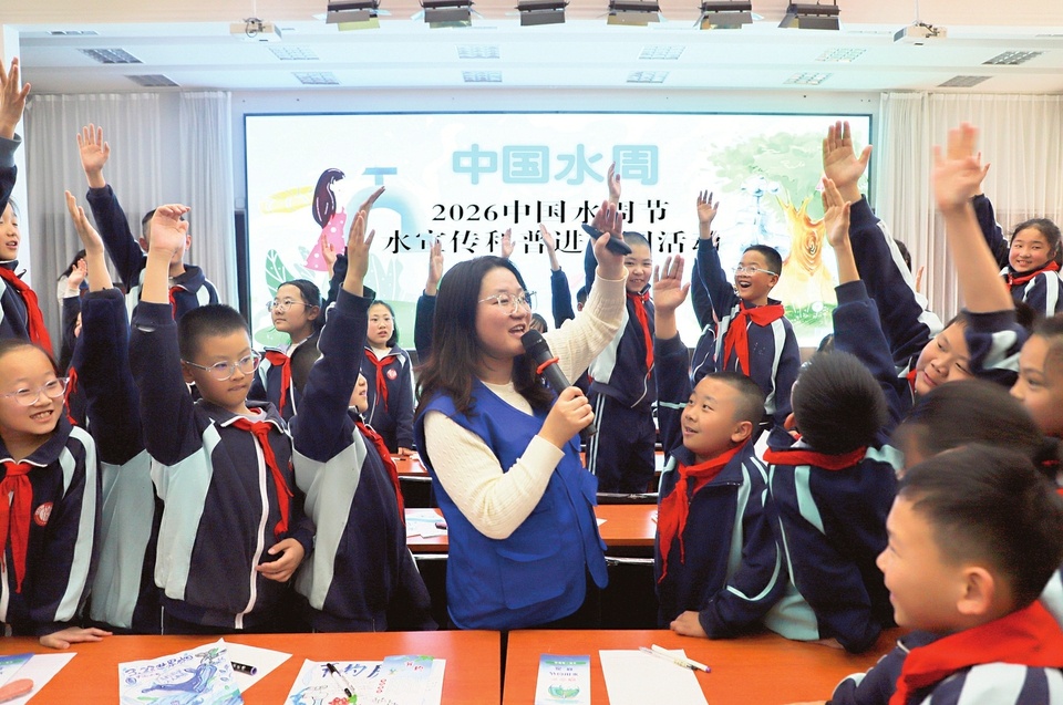 日前,山西省太原市水务局在太原市迎泽区小五台小学开展2026中国水周节水宣传科普进校园活动。工作人员为同学们讲解节水知识,开展互动问答,并指导孩子们创作节水主题绘画。活动以寓教于乐的形式,引导青少年树立节水护水意识,从小养成珍惜水资源、科学用水的良好习惯。(申晋光 摄)