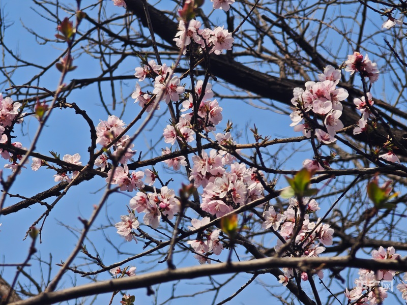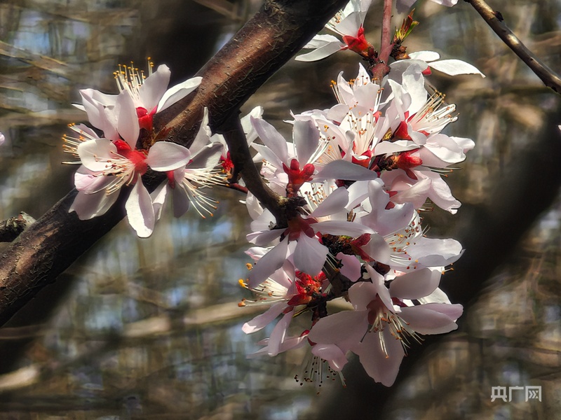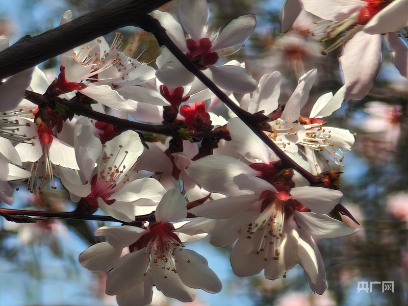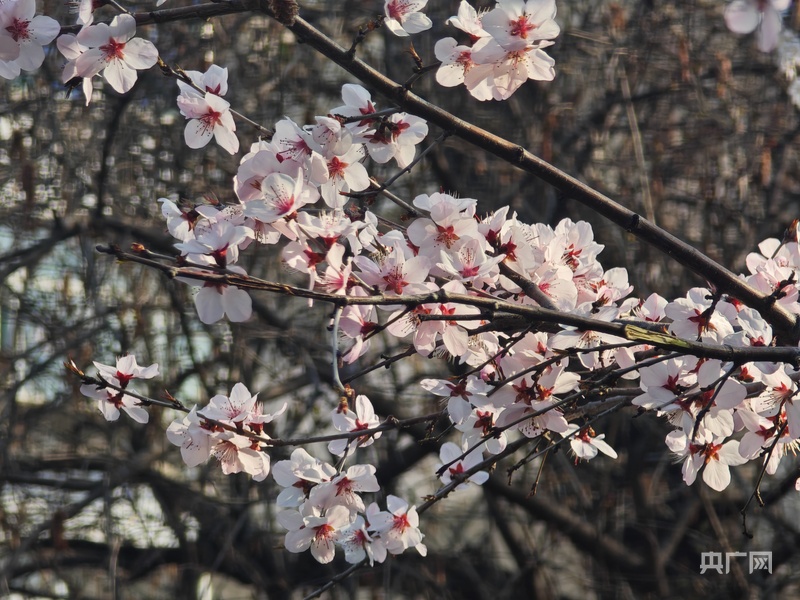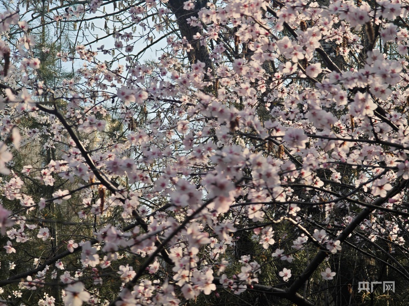 太原迎泽公园内的山桃花缀满枝头(央广网记者 温雅慧 摄)
