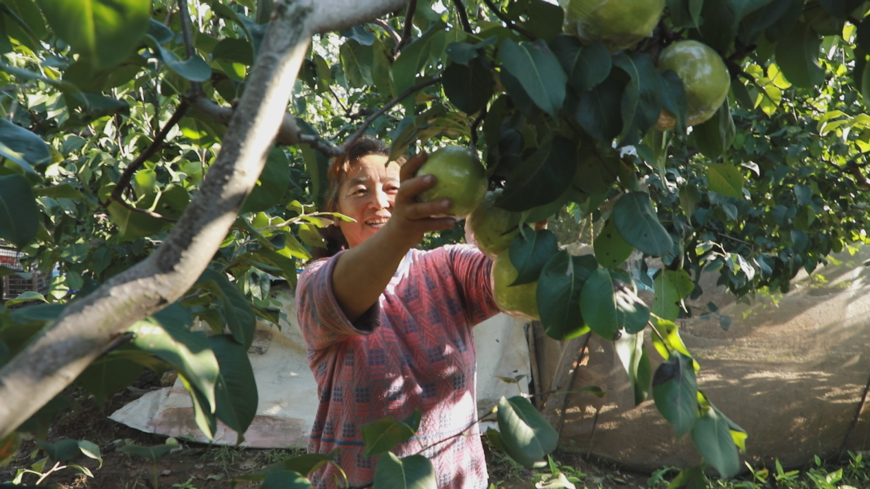 村民正在采摘富硒玉露香梨(垣曲县融媒体中心供图)
