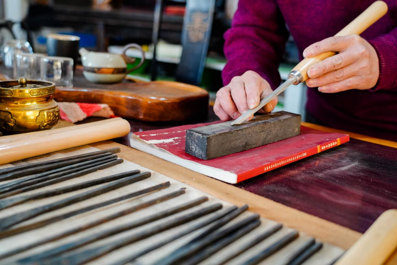 李永红手工打磨雕刻工具(占兵 摄)