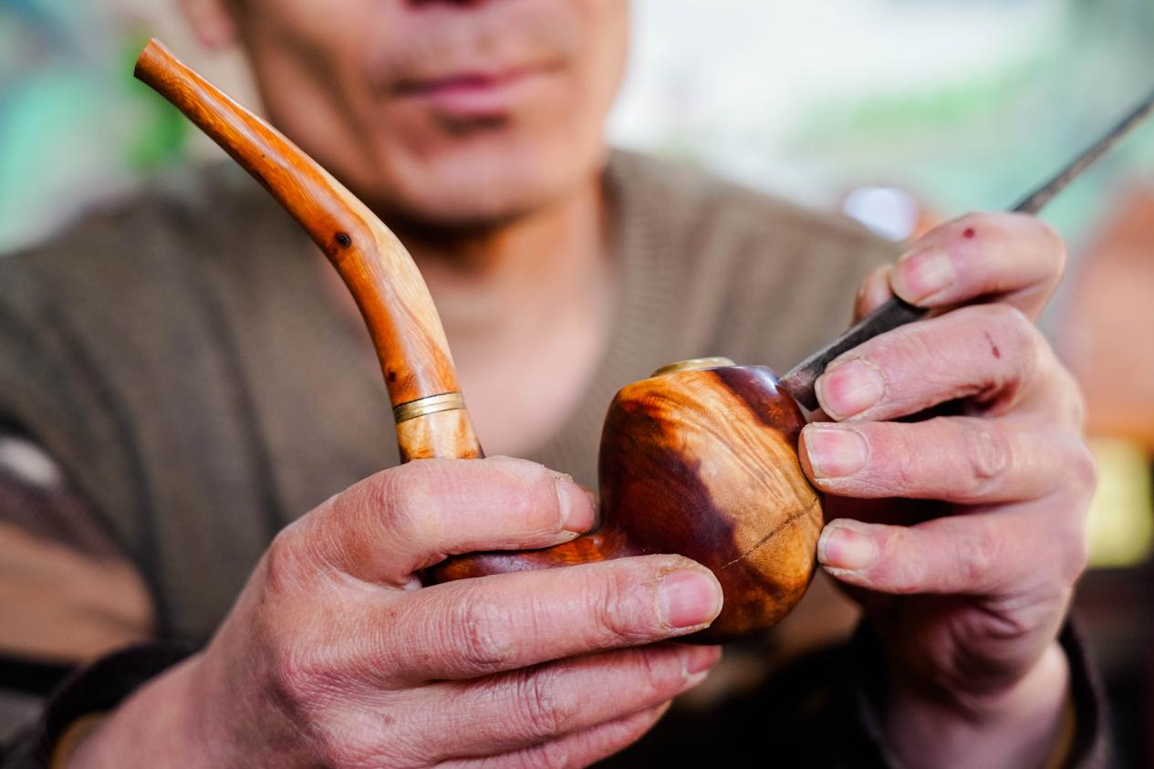 带有自然纹路的烟锅根雕成品(占兵 摄)