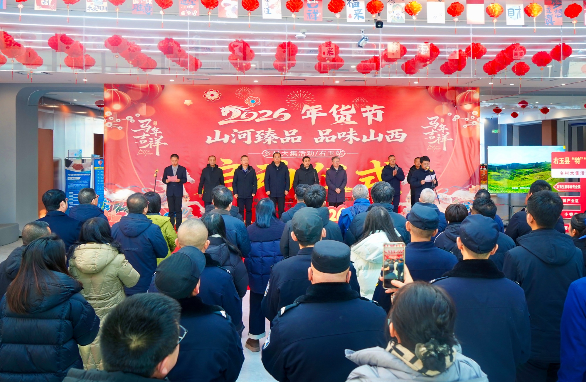 政策引领消费升级,安全护航放心消费。此次年货节严格遵循“政府指导、市场化运作”原则,在右玉县政府的统一部署下,成立了专门的工作领导组,下设综合协调、布展、直播、后勤接待、宣传、安保等小组,确保活动有序、顺畅、高效、安全开展。现场还协同公安、消防、医疗等多部门,为市民营造了一个安心、舒适的采购环境。