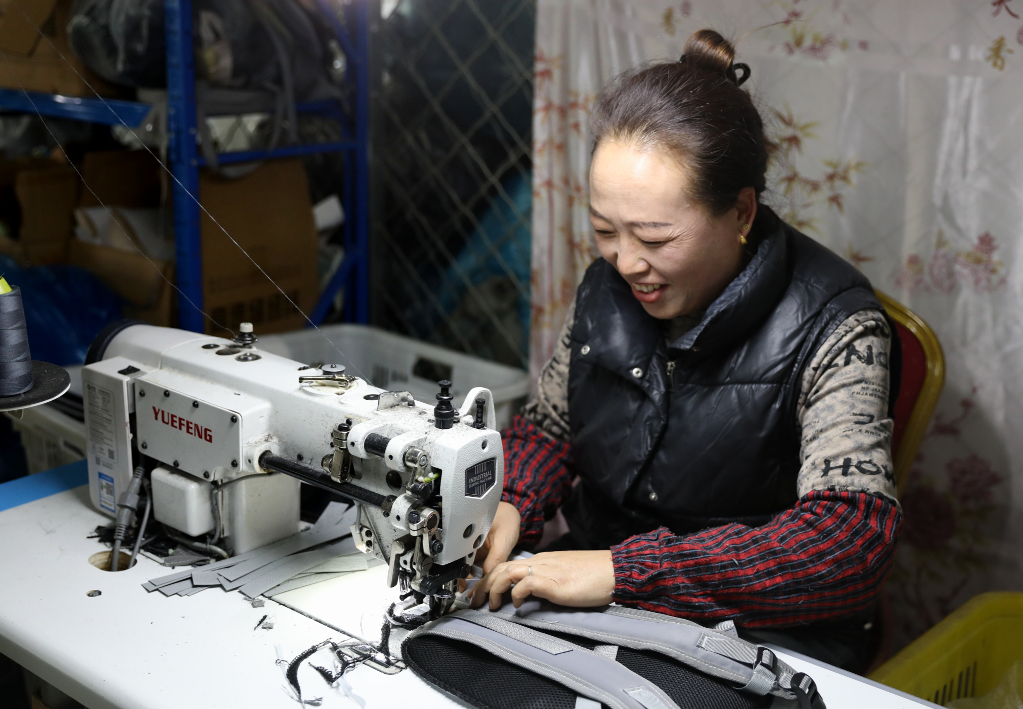 寒冬时节,山西省大同市广灵县的箱包生产车间内暖意融融,女工们正忙着赶制一批国外订单。数百台缝纫机的“咔嗒咔嗒”声此起彼伏,各色面料经巧手裁剪、缝制,化作一件件精美包袋。“现在对我来说,最大的好处是‘守着家,挣着钱’。步走几分钟就到厂里,家里活儿也不耽误,每月拿着5000多块钱的工资,这样的日子再好不过了。”家住广灵县城的李宝平一边熟练地操作缝纫机为双肩包的前片滚圈,一边笑着说道。