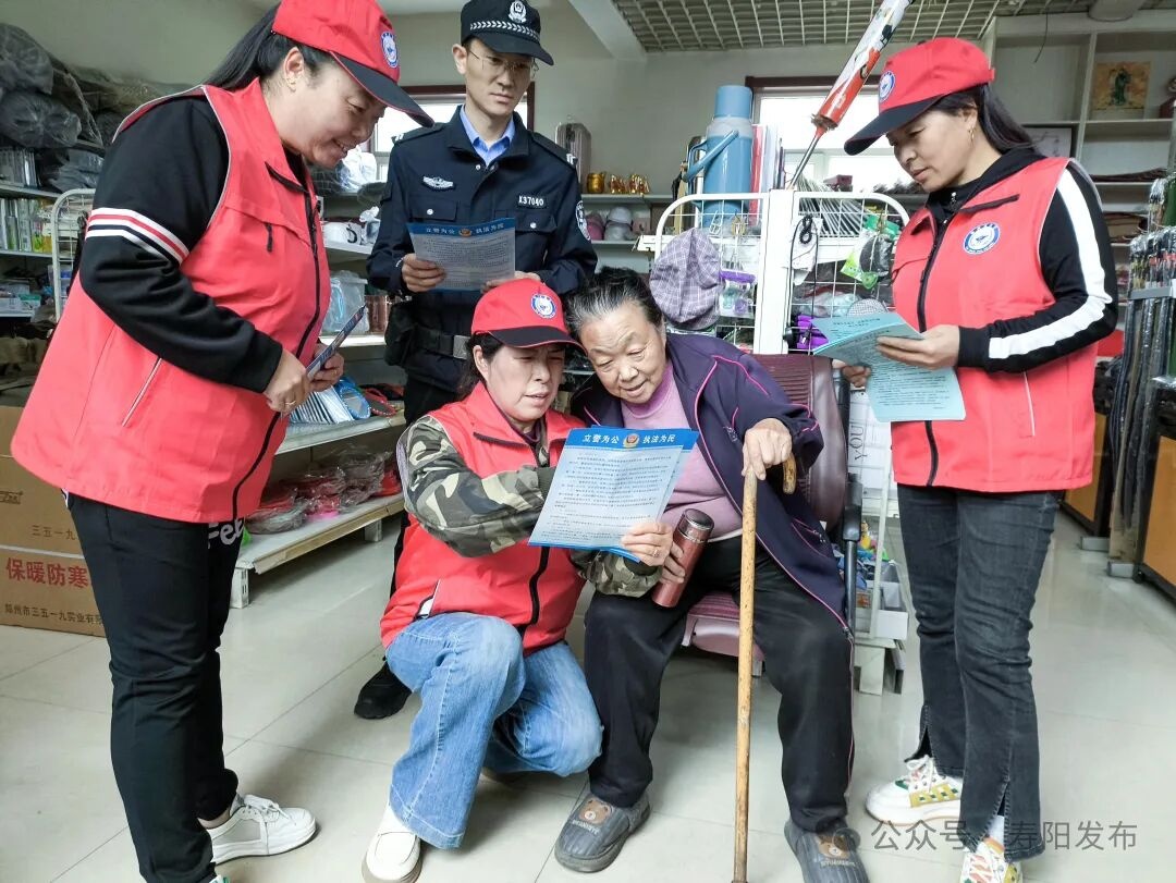 南燕竹“花木兰”女子巡防队通过“1+1+N”群防群治新模式,将警务工作延伸至基层“神经末梢”,以巡逻防控、法治宣传等行动守护群众平安。(图为南燕竹“花木兰”女子巡防队开展治安宣传)(寿阳县委宣传部供图)