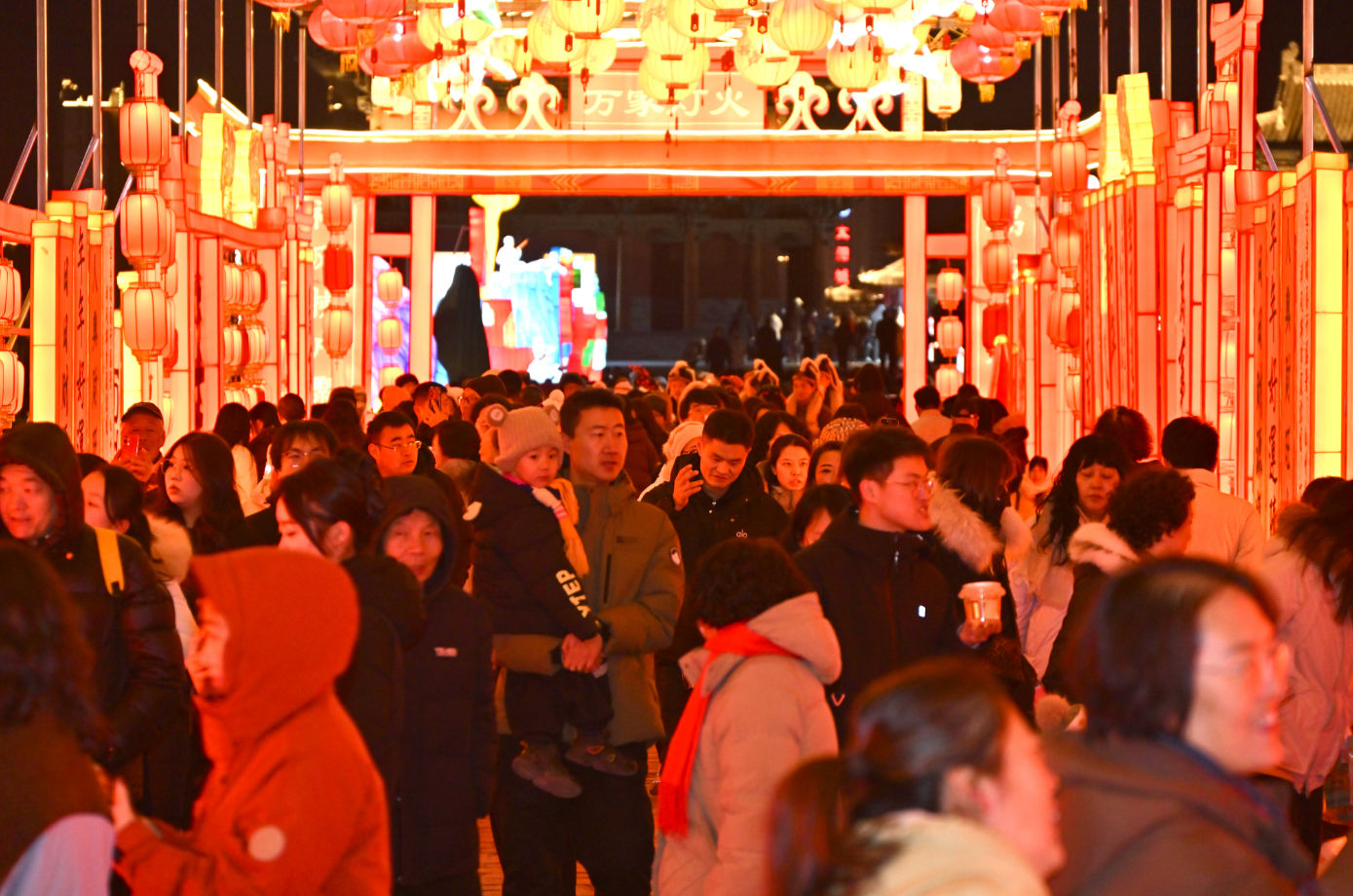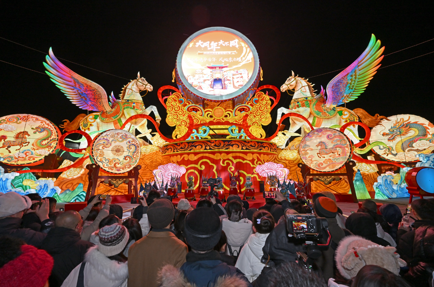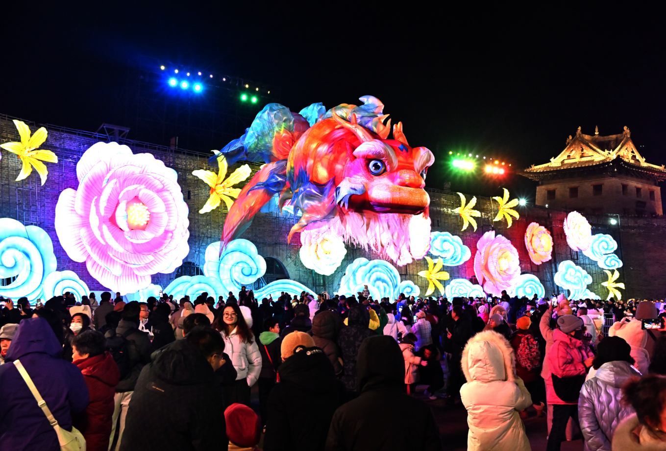 华灯璀璨扮靓古城,万众欢腾喜迎新春。2月10日晚,2026年“万马齐鸣中国年·风起东方耀大同”中国大同古都灯会于古城永泰门广场璀璨启幕。千年城墙流光溢彩,北魏风韵与现代科技交相辉映,一场以光影为笔、以文化为墨的史诗级灯会,正式拉开大同新春文旅的华彩帷幕。热情好客的大同人民相约四海宾朋,共同领略一场集民俗灯彩、演出、互动、体验、商业为一体的光影盛宴。