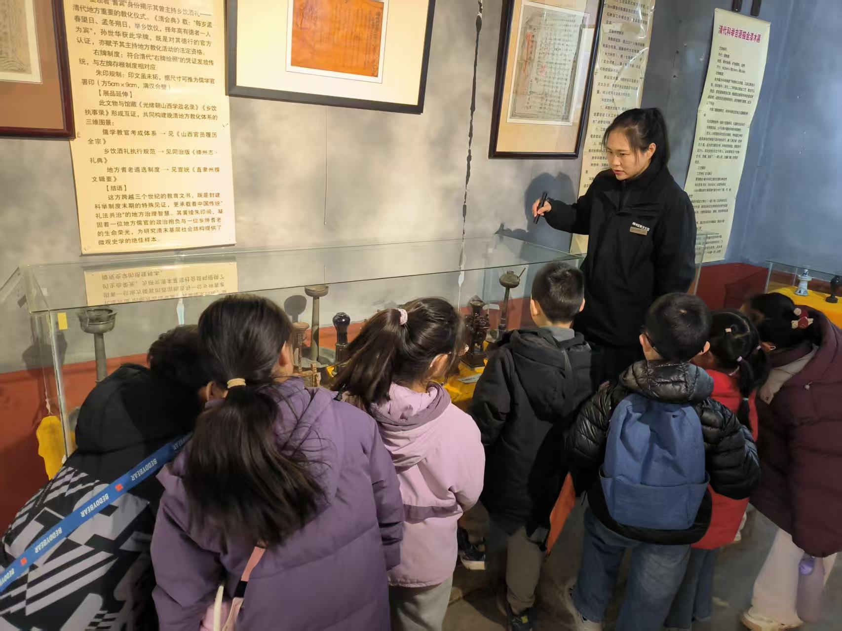 作为晋南规模最大的民间博物馆,文化园珍藏十万余件文物古迹,30个主题展馆、绛州“七十二行”展区,默默诉说着千年绛州的厚重历史。寒假以来,十余所学校的学子相继入园,开启沉浸式文化研学之旅。在园区三泉不昧碑原碑前,总是围满凝神驻足的学子,这块承载着绛州地方历史与人文底蕴的古碑,成为研学途中的重要一课。讲解员细致讲述碑刻来历与文字记载的岁月故事,孩子们围站四周专注聆听,在一字一句、一笔一画中,真切触摸绛州千年传承的历史温度,让古老文脉在青春的注视中薪火相传。