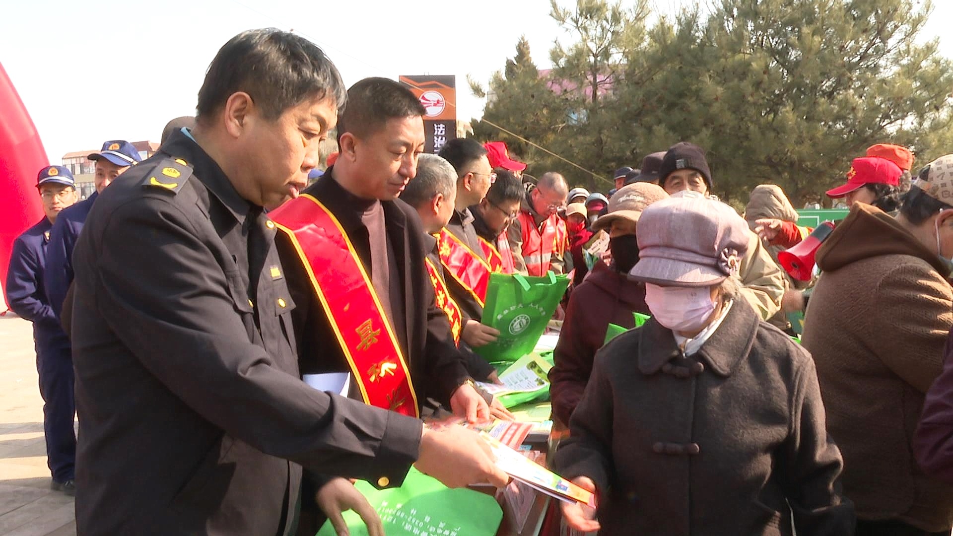 工作人员边发送资料边宣讲防灭火知识(张成君 摄)