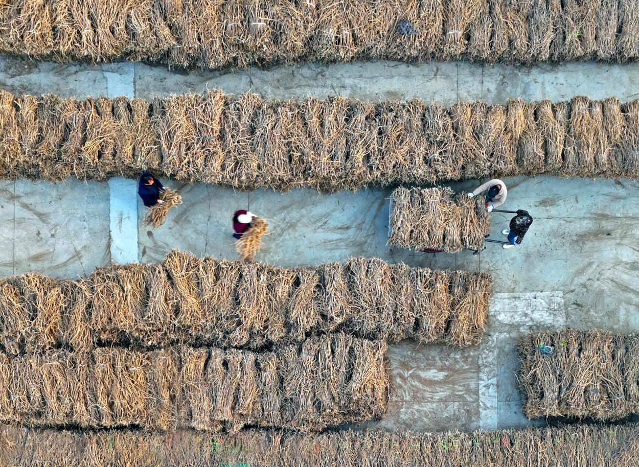 工人正将粗壮的黄芪切为厚薄均匀的薄片(宋佳烨 摄)