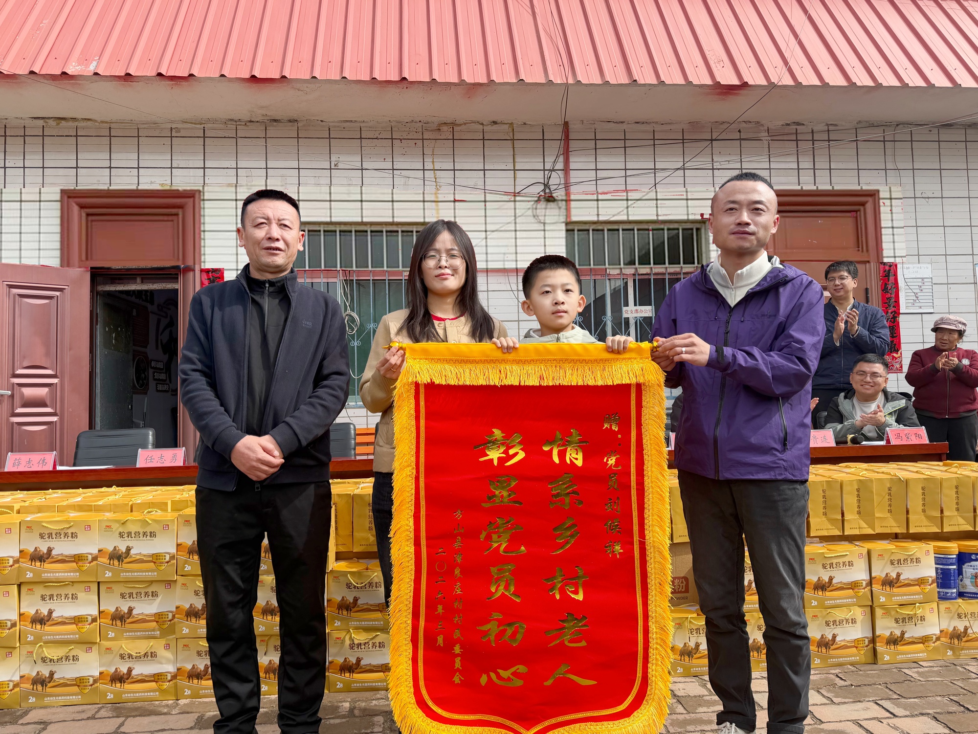 这份温情,源于刘候祥心底深藏多年的感恩。他自幼家境贫困,成长路上,是邻里乡亲一次次搭手相助,帮他度过难关。在外闯荡多年,他凭借勤劳与拼搏站稳脚跟,却始终未曾忘记故土的养育之恩——这片生他养他的土地,那些曾向他伸出援手的乡亲,是他心中最柔软的牵挂。此次返乡,他特意自费购置总价值8万8千元的驼乳营养粉,聚焦村里的老年群体,把关怀送到最需要的人身边,用实际行动践行着“饮水思源”的初心。