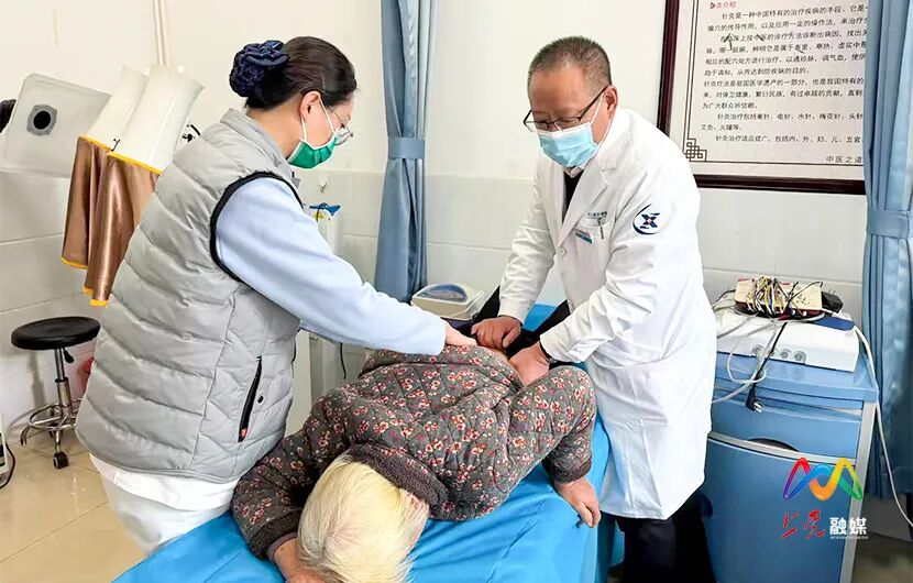 正骨医院的专家手把手教村民做关节康复操(上党融媒供图)