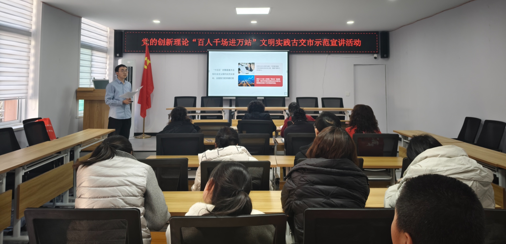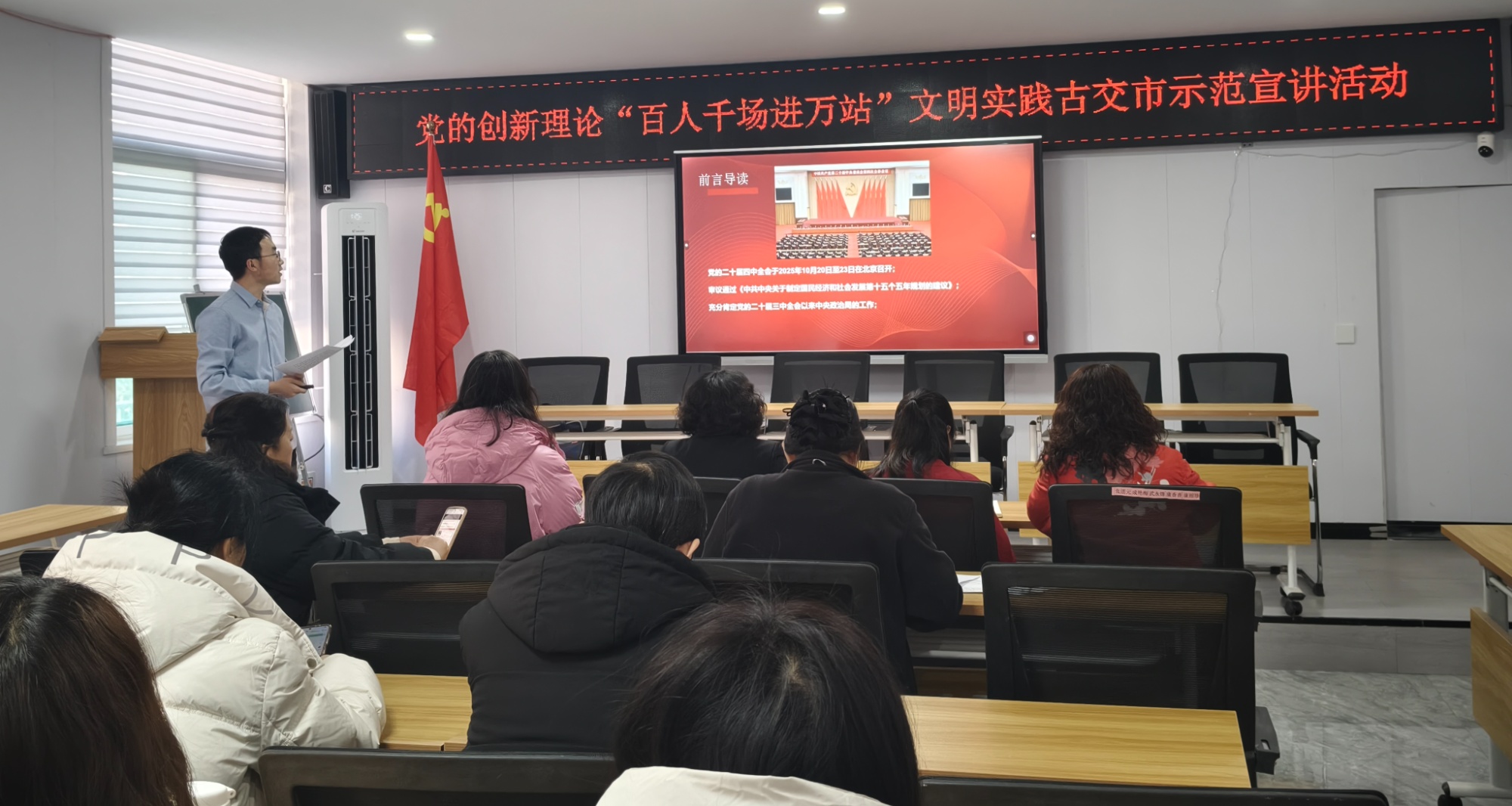 活动中,宣讲员紧扣“十四五”时期我国经济社会发展的重大成就,结合省市及古交本地发展实例,用数据与故事生动展现五年来的历史性变革;围绕“十五五”时期发展的重大部署,深入浅出地解读政策导向与发展机遇,描绘出清晰可感的未来画卷;并就抓好党的二十届四中全会精神的贯彻落实,提出贴近基层的实践路径。宣讲内容既有理论高度,又接地气、冒热气,引导听众深切感受时代脉动与国家进步。