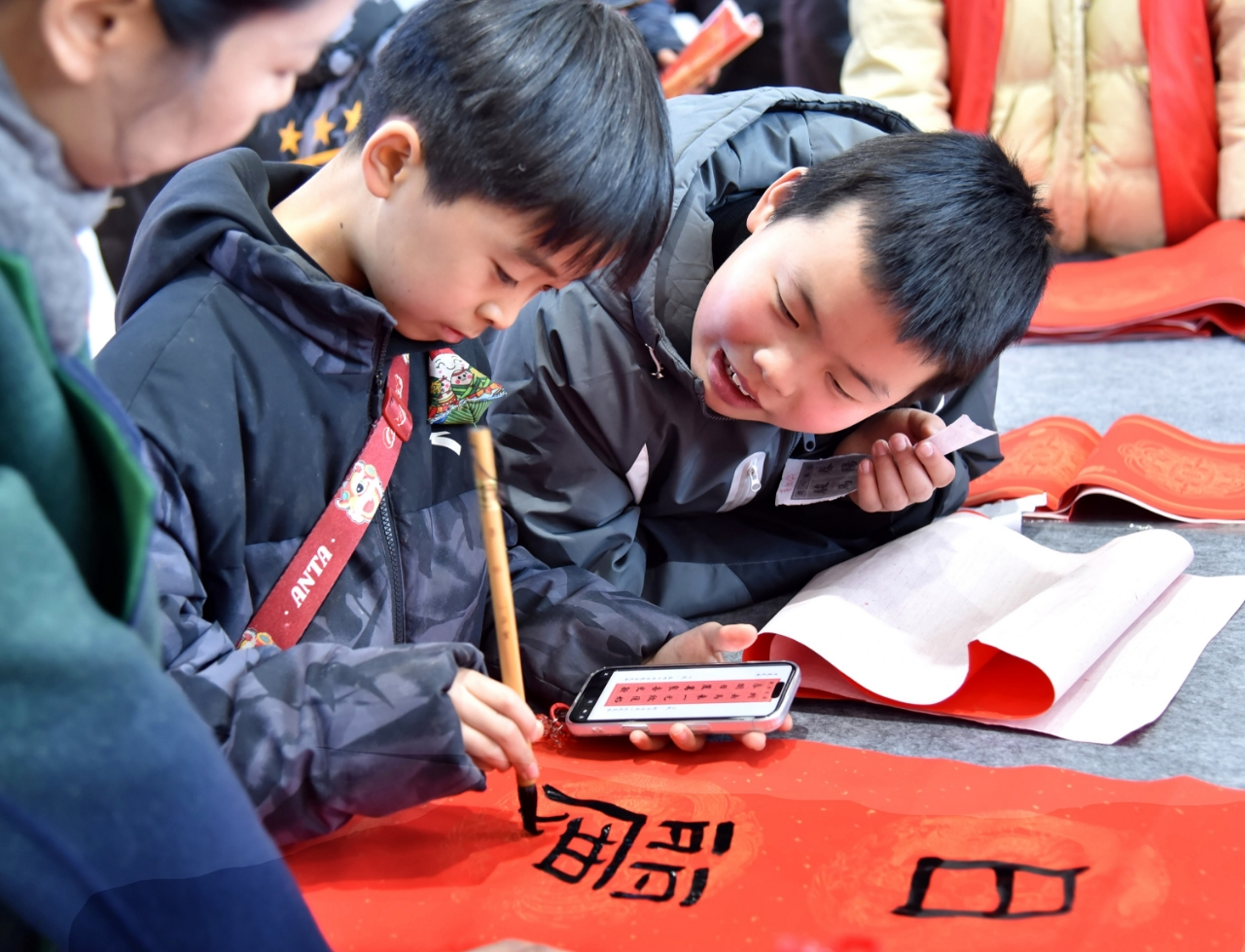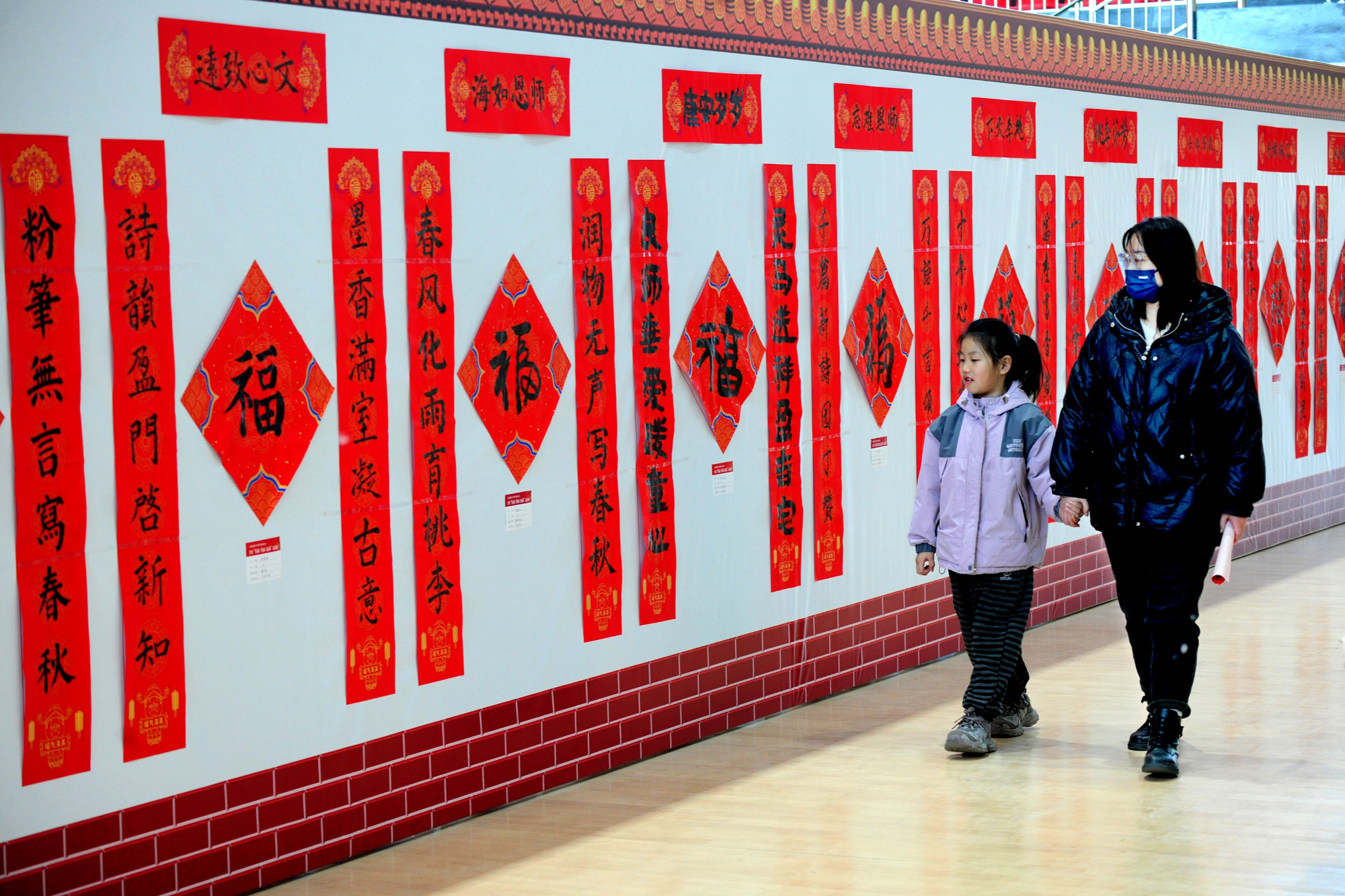 2月8日,山西运城市万荣县青少年校外活动中心室内篮球场内墨香四溢、笑语盈盈。由该县青少年校外活动中心与孤峰社区联合主办的以“骏马追风颂师道,春联焕彩惠民生”为主题的“写春联、赏春联、送春联”大型迎新春活动在此举行。