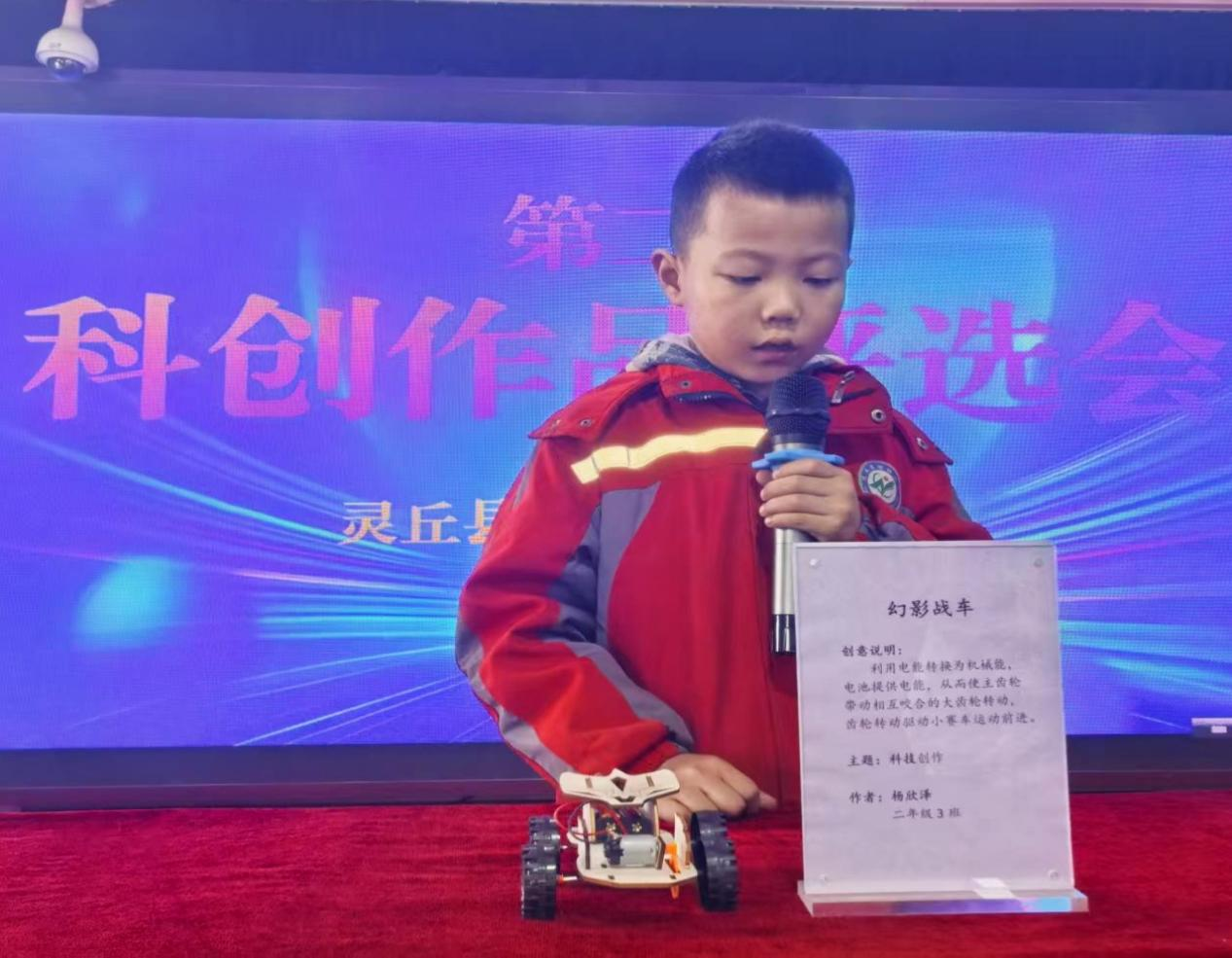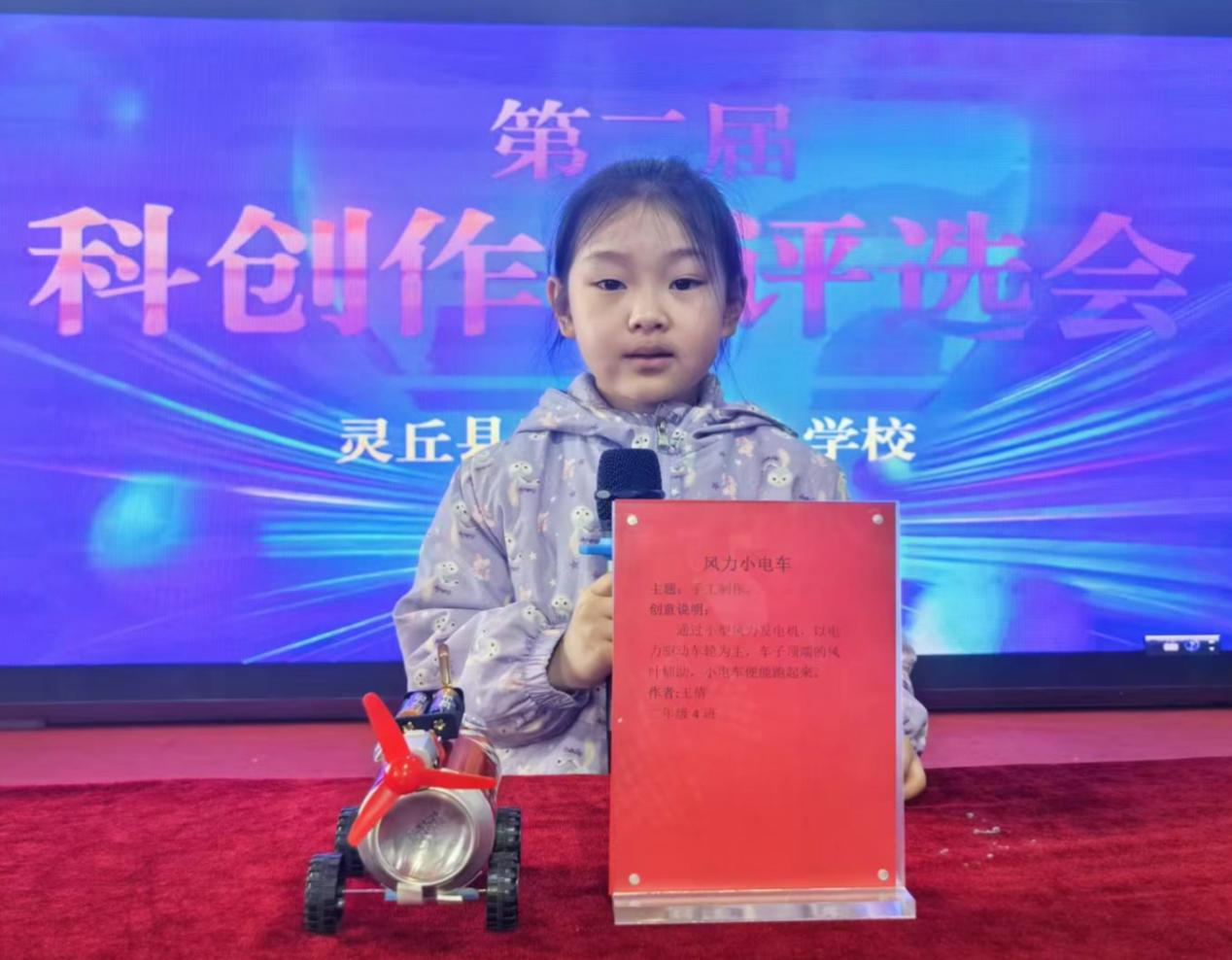 小选手展示作品《风力小电车》(灵丘县委宣传部供图)