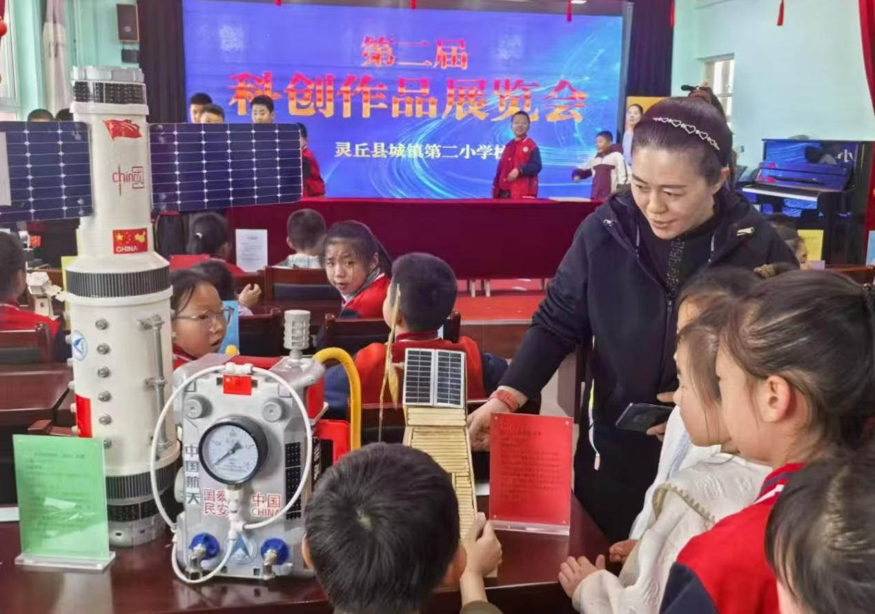 “快看,我的‘幻影战车’能转弯!” “这个空间站模型太像了!”……近日,山西省大同市灵丘县城镇二小校园里热闹非凡,第二届科创作品评选、展览及颁奖系列活动在此举行。全校各年级学生积极参与,共提交各类科创作品60余件,涵盖航天、物理、机械、环保等多个领域,孩子们用双手和智慧搭建起一座属于自己的“微型科技馆”。