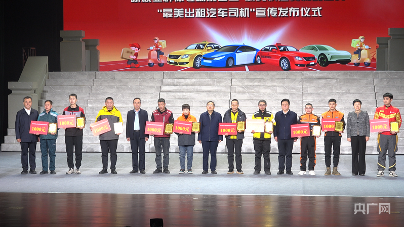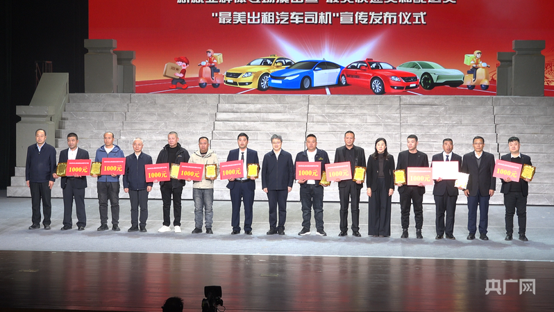 现场表彰“最美快递员和配送员”“最美出租汽车司机”(央广网记者张洁摄)