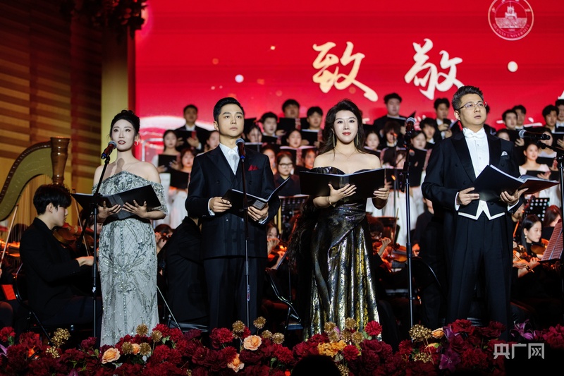 下篇“寰宇和鸣”集中呈现西方经典,包括《雷电波尔卡》《溜冰圆舞曲》等管弦乐作品,以及《我的太阳》《让我们携手同行》等声乐选段。音乐会在《欢乐颂》庄严恢宏的合唱中推向高潮,并以《拉德斯基进行曲》引发全场观众随节拍击掌互动。