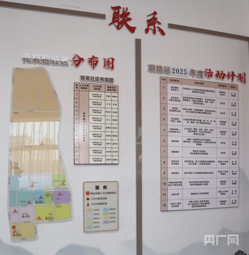联络站内展示了代表进社区分布图以及2025年度活动计划(央广网发 韩佳颖摄)