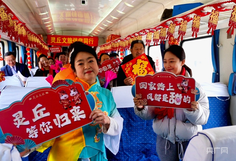 央广网大同2月12日消息(记者张晋鹏 通讯员马明清)2月10日,正值农历腊月二十三、北方的传统小年。山西省大同市灵丘县文旅局联合铁路部门,在穿行于京原线的8817/8818次列车上,联合举办“贺岁专列 灵丘文旅伴您行”主题活动,邀各地游客走进灵丘、乐享新春。
