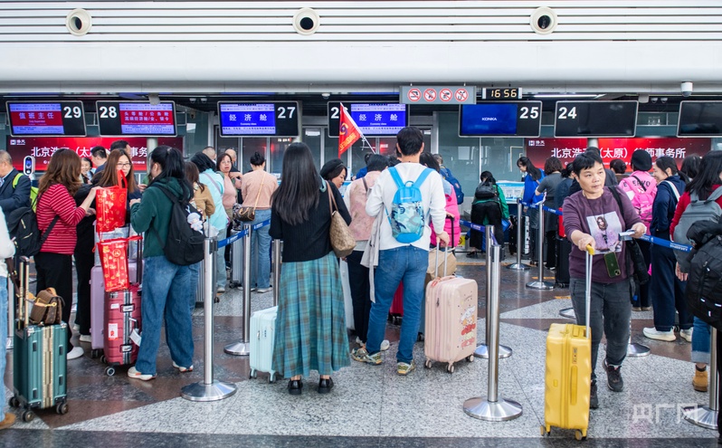 旅客正在机场内办理值机业务(央广网发 太原机场供图)