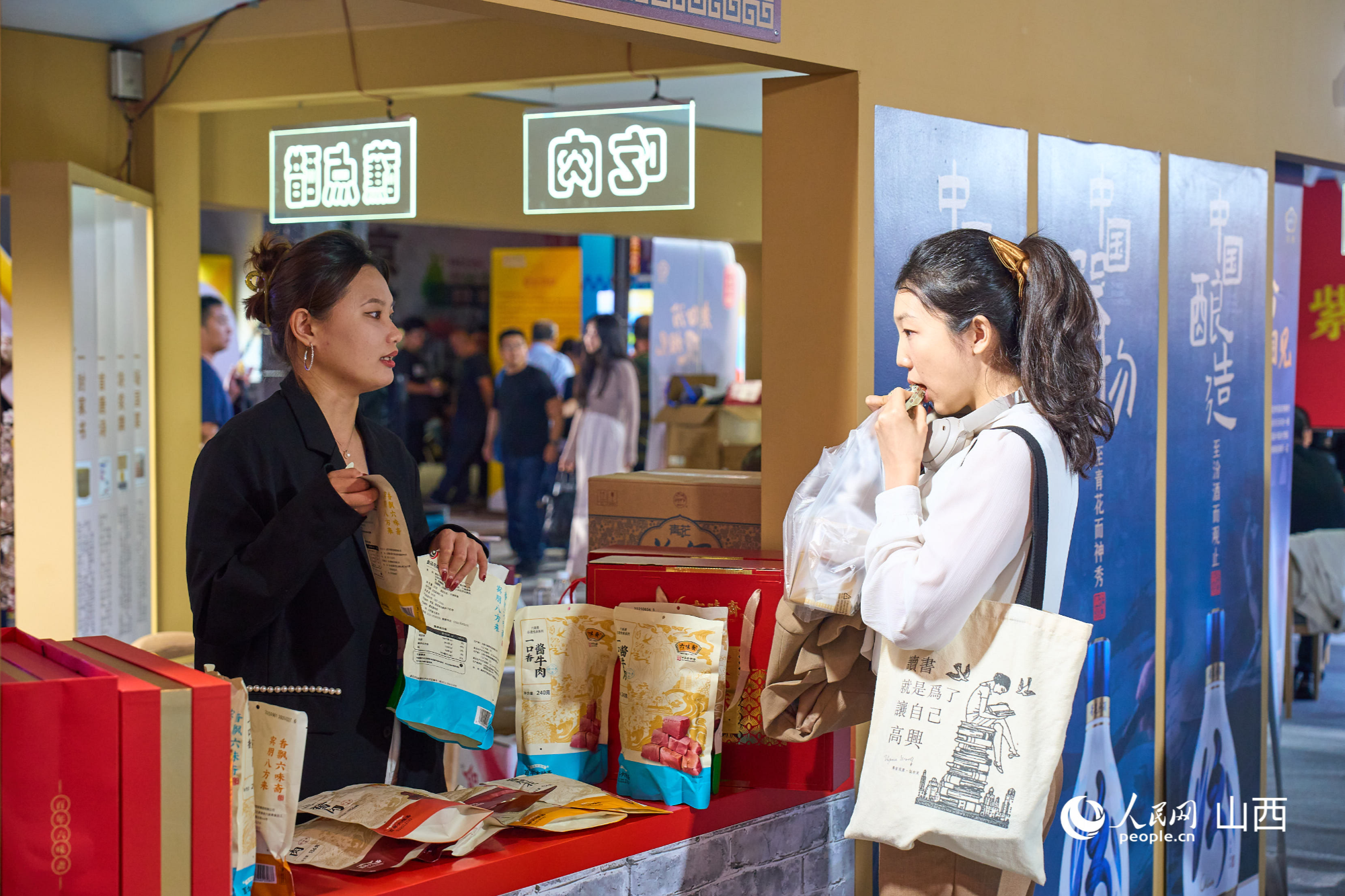 游客在六味斋展位品尝酱肉(主办方供图)