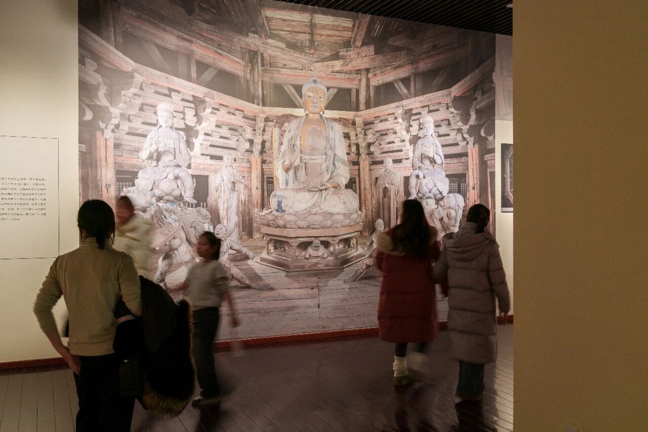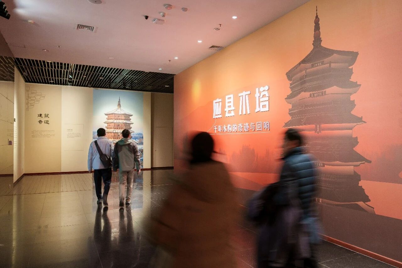 观众参观“应县木塔——千年木构的奇迹与回响”(山西博物院供图)