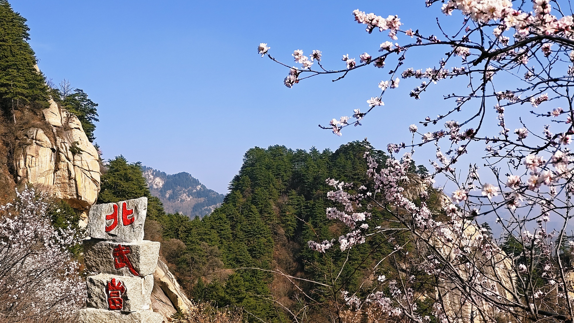 春日登临北武当山,满目皆是盎然生机。山间桃花、杏花次第绽放,有的含苞吐蕊娇羞可人,有的肆意盛放摇曳生姿,繁花点点缀满山野,勾勒出烂漫春光。游客沿青石步道拾级而上,沿途花枝迎风舒展,耳畔鸟鸣清脆婉转,山间云影流转变换,一步一景皆是诗意画卷,不少游人驻足拍照打卡,定格春日限定美景,沉浸式畅享山林间的清新空气与自然野趣。