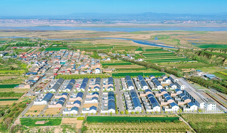 4月6日拍摄的万荣县荣河镇庙前村。该村依托黄汾交汇的独特地理优势,狠抓人居环境整治和美丽乡村建设,打造了后土祠等优质旅游资源,高标准规划108套村民新居,村庄面貌焕然一新。(杨建峰)
