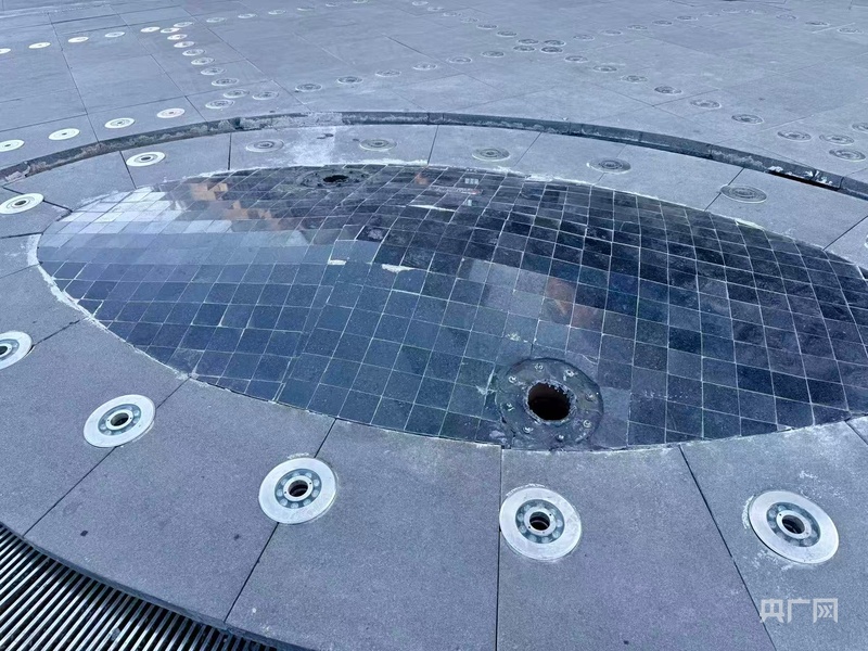 雕塑被拆除后的地面痕迹(央广网记者张晋鹏摄)