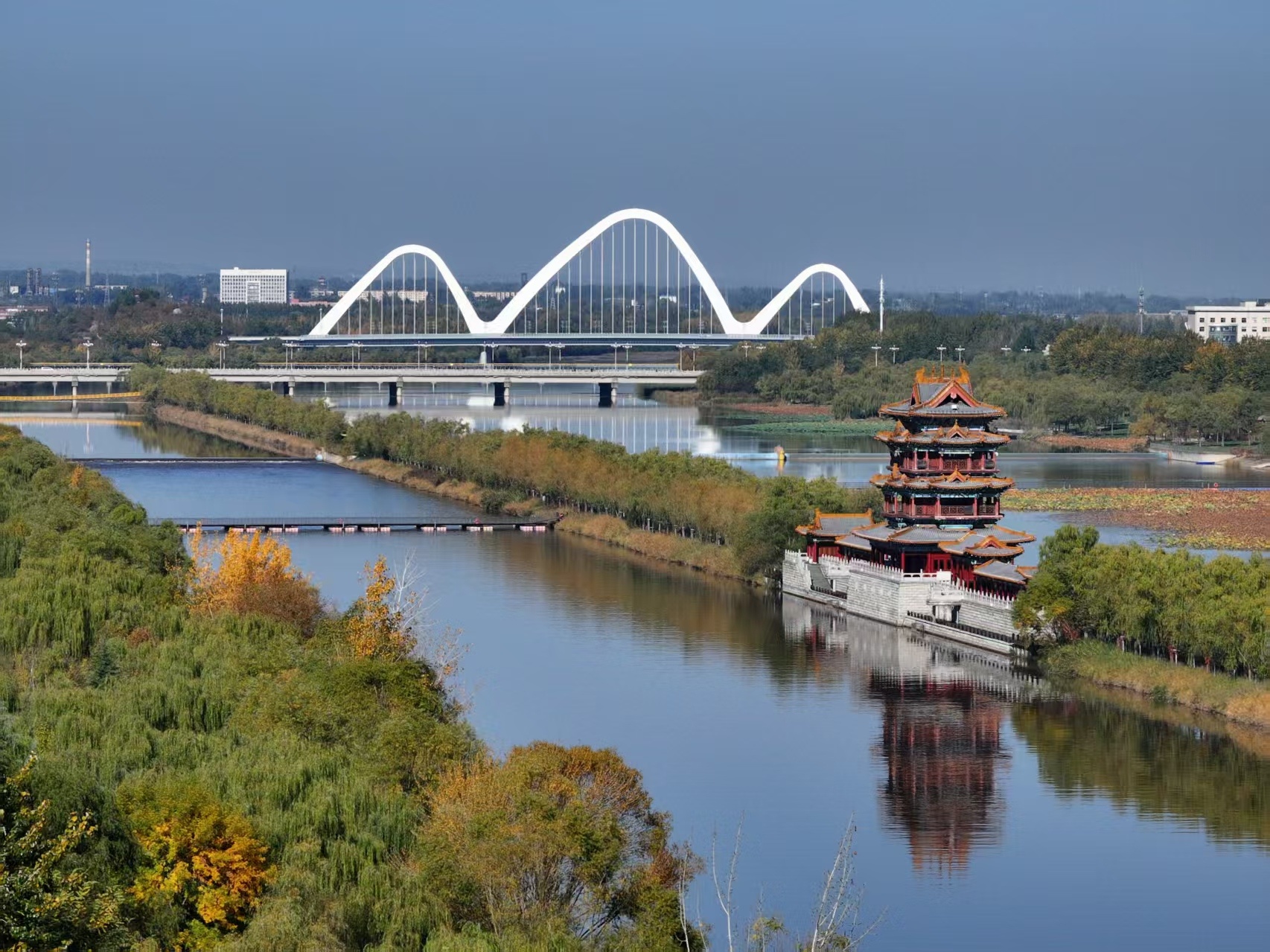 临汾市汾河文化生态景区水清岸绿(央广网发 闫锐鹏摄)