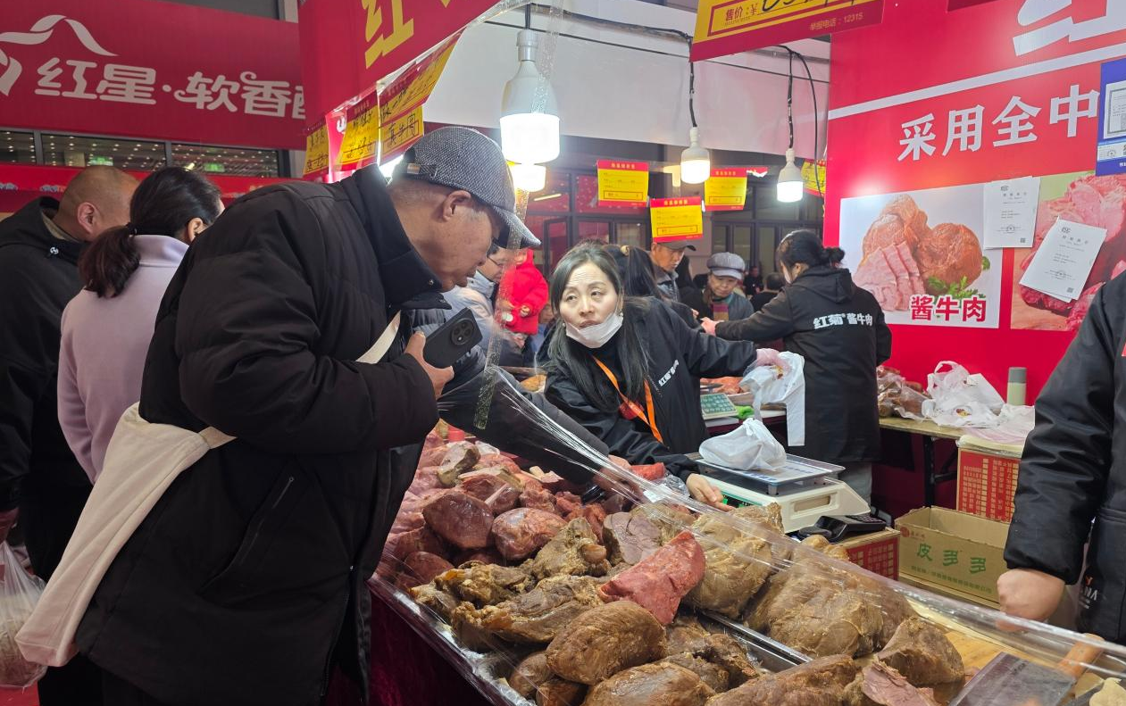 “我专门坐地铁来的,就为了买点地道的本地点心送亲戚。”在红星软香酥的展位前,市民周阿姨的购物袋里已经装得满满当当。她是年货会的“老熟客”,坦言看中的正是这里“品种多、东西全、价格也实在。”“除了必买的陕西特产,我还买了点哈尔滨红肠尝尝鲜,过年餐桌就得丰富些。”