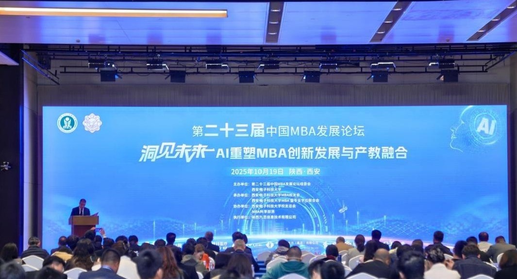 央广网西安10月20日消息(记者张伟 实习记者张栋景)2025年10月19日,以“洞见未来:AI重塑MBA创新发展与产教融合”为主题的第二十三届中国MBA发展论坛在陕西宾馆会议中心开幕。论坛由第二十三届中国MBA发展论坛组委会与西安电子科技大学联合主办,汇聚了来自全国多所高校的专家学者、领军企业管理精英、MBA师生及校友代表,共同探讨人工智能时代管理教育的变革路径与产业协同之道。