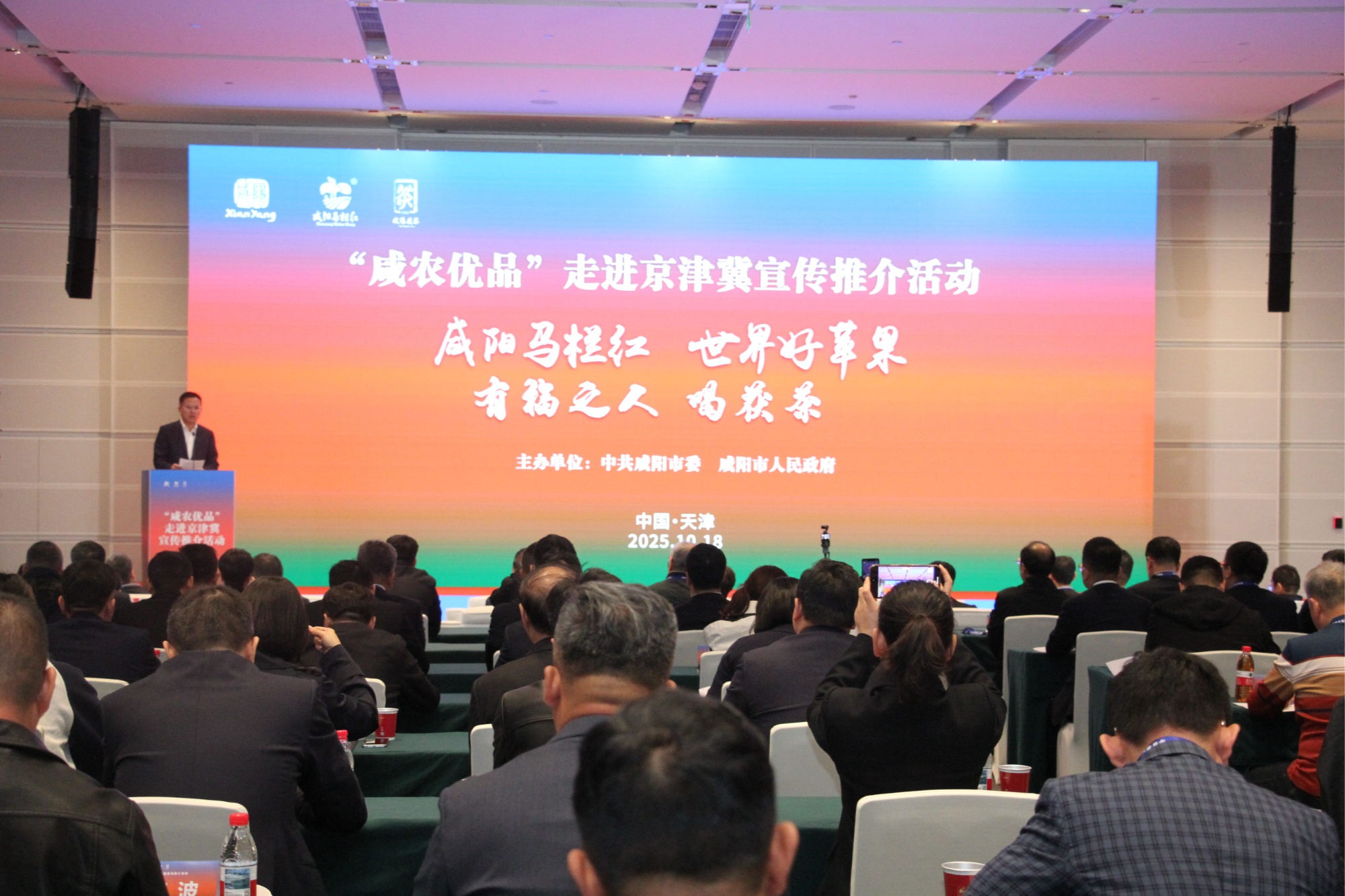 咸阳市委书记、市长冷劲松在致辞中表示,咸阳农耕文化兴盛,农业基础坚实。近年来咸阳加快构建现代特色农业产业体系,孕育出种类丰富、品质俱佳的各色农产品。举办“咸农优品”走进京津冀宣传推介活动,就是为了让更多人享咸阳水果之甜、尝咸阳蔬菜之鲜、品咸阳畜牧之佳、饮咸阳茯茶之醇。热情期待广大客商关注咸阳农业发展、投资咸阳农业产业、销售咸阳农特产品,携手让“咸农优品”香飘全国、走向世界。我们将在营商环境、科技推广、产业培育等方面持续发力,让大家在咸阳放心投资、安心创业、舒心发展。