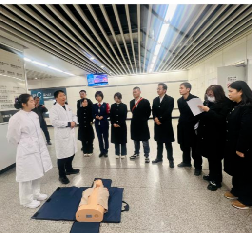 本次培训由心血管内科三病区胡建华医生和辛娜护士主讲。两位老师结合地铁工作场景,围绕心肺复苏、癫痫应急处理、海姆立克法及呼吸性碱中毒应对四项核心内容,开展系统讲解与实操教学。培训现场设置了模拟人进行教学讲解,内容贴近实际、语言通俗易懂,重点突出“第一时间、第一现场、第一反应”的急救理念。