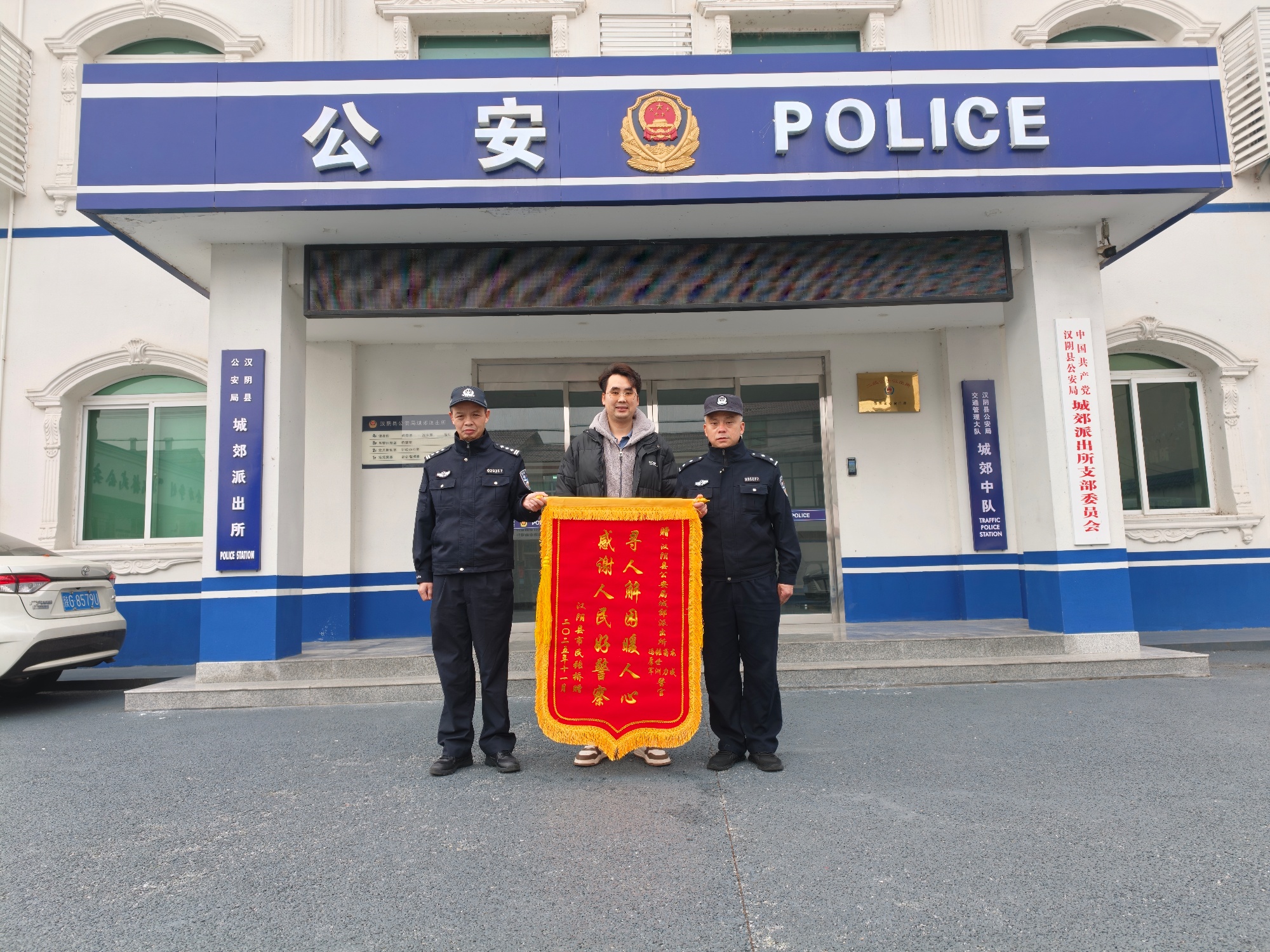 小萱(化名)父亲给汉阴县公安局城郊派出所送锦旗(央广网发 王亮亮 摄)