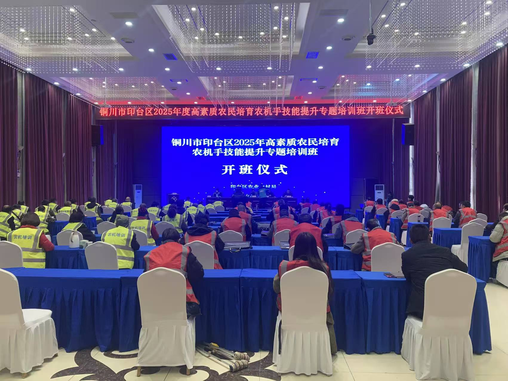 近日,铜川市印台区2025年度高素质农民培育农机手技能提升培训班举行开班仪式。来自全区农机作业服务组织带头人、专业农机手和农机大户等100余人参加开班仪式,市、区相关领导出席,并与全体参训学员共同开启为期15天的技能提升之旅。